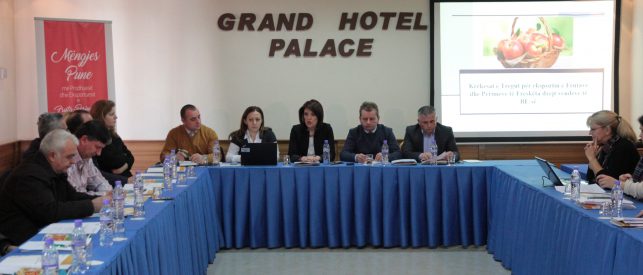 Në aktivitet u prezantua guida e kërkesave për eksportin e fruta – perimeve drejt vendeve të BE-së, si dhe dy shembuj konkretë për produktet e mollës dhe të domateve.
